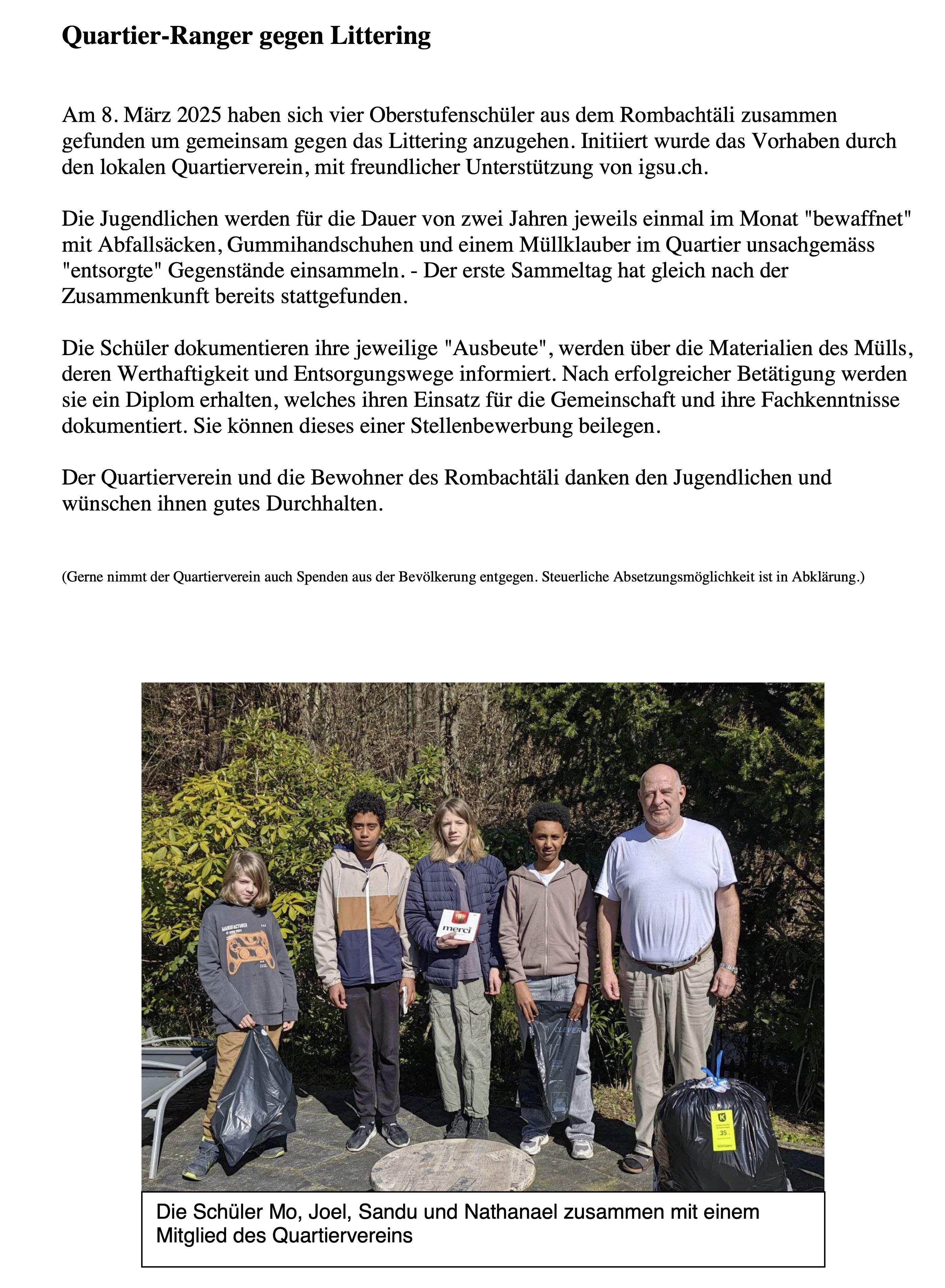 - Clean-Up-Day 2025 im Rombachtäli: Zielgruppe erreicht!
